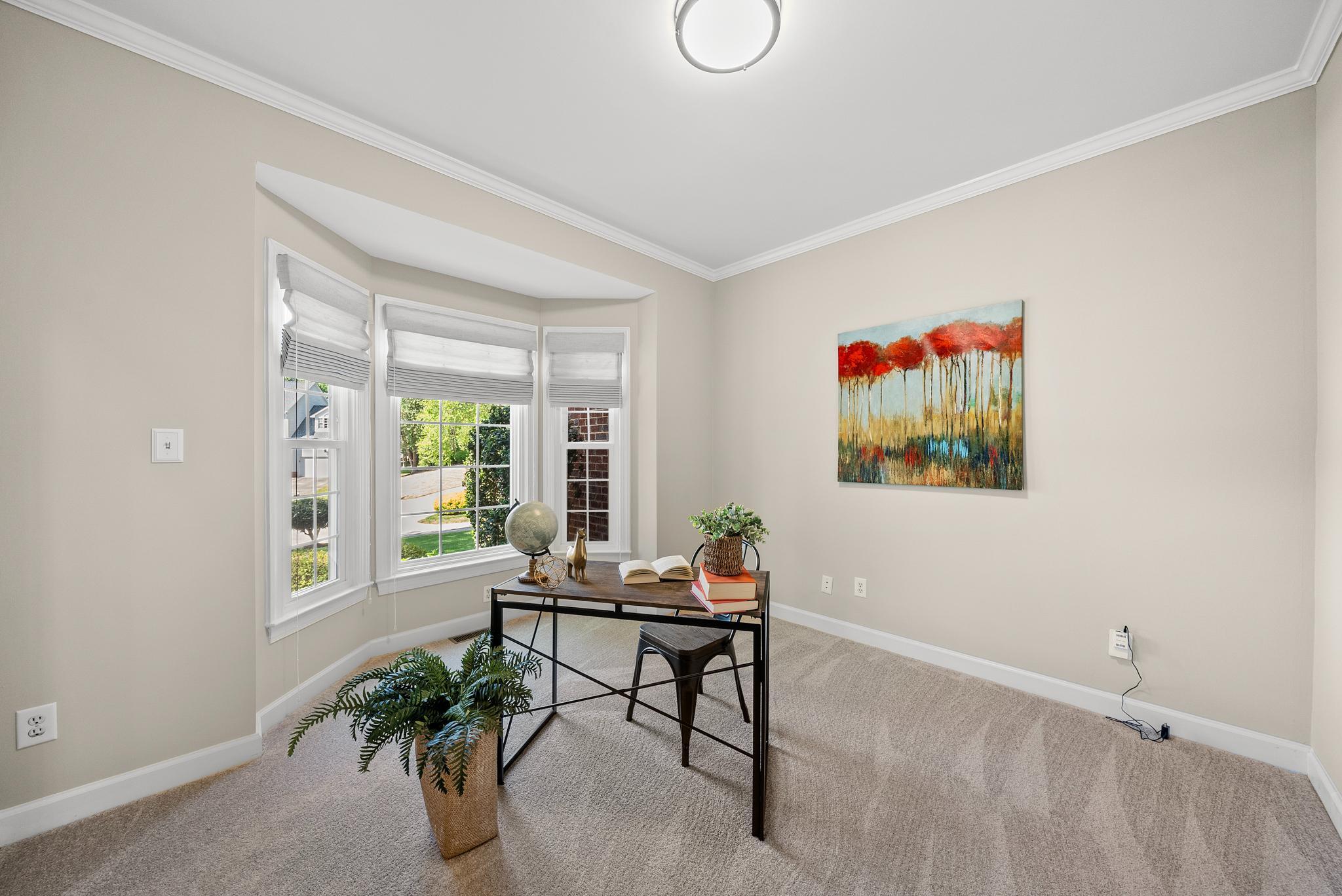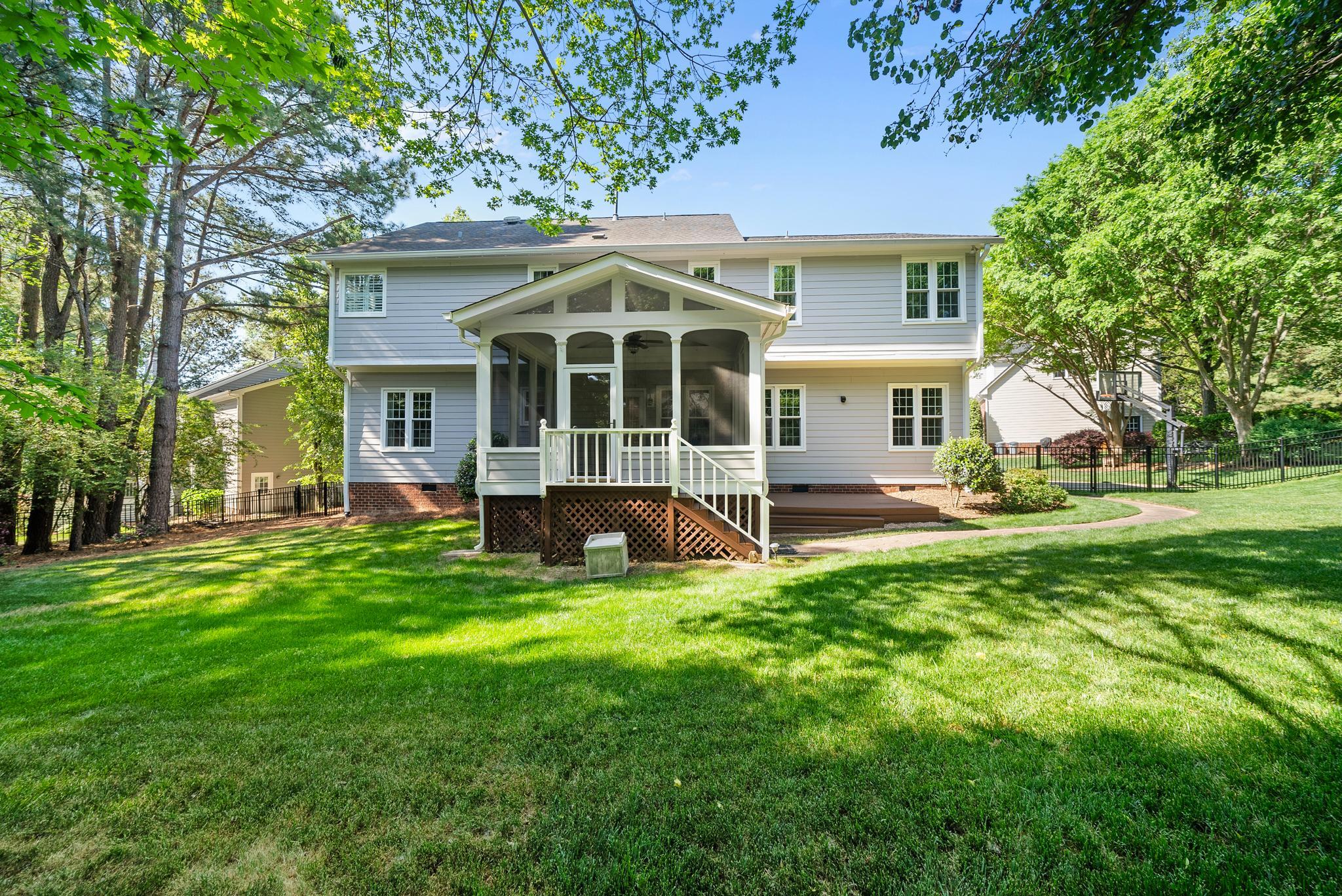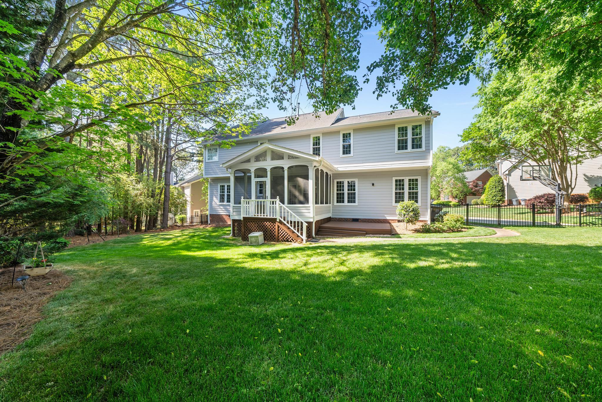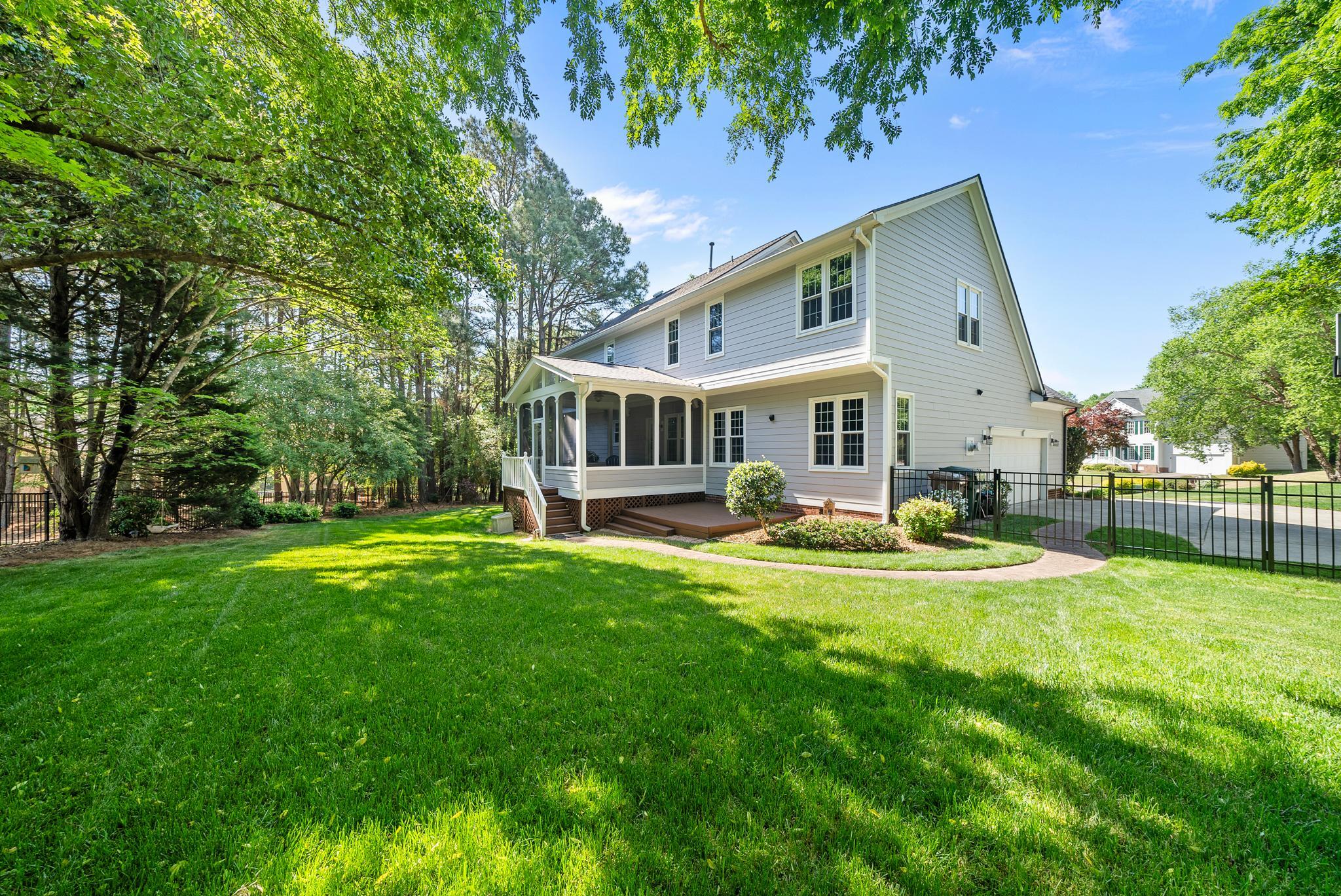 Beautifully maintained and lovingly updated home nestled on a large, private cul-de-sac lot in a highly convenient Cary location! This inviting property offers the perfect blend of comfort, functionality, and thoughtful updates throughout. Step inside to a bright, freshly painted interior and new carpet on the main level! The main floor includes a private office with a charming bay window, ideal for working from home, along with formal living and dining spaces that open seamlessly into the kitchen and family room. The kitchen is well-appointed with two pantries for exceptional storage, generous counter space, and updated appliances including a new refrigerator (2020) and stove (2022). Enjoy a generously sized laundry room with built in storage on main level as well! Upstairs, you'll find a spacious primary suite which features an updated ensuite bath with dual vanities, a whirlpool tub, and separate shower, creating a true owner's retreat. A versatile bonus room with built-in desk area is perfect for all your home's needs, from a playroom, to a media space, or additional workspace. Additional highlights include bonus storage space upstairs and generously sized secondary bedrooms. Outside, the screened porch overlooks a spacious and private fenced backyard, helping you escape from the noise of city life just a short drive away! Major updates provide peace of mind, including new Hardiplank siding (2022), new windows (2020), new gutters (2020), and HVAC systems updated upstairs (2022) and downstairs (2024).